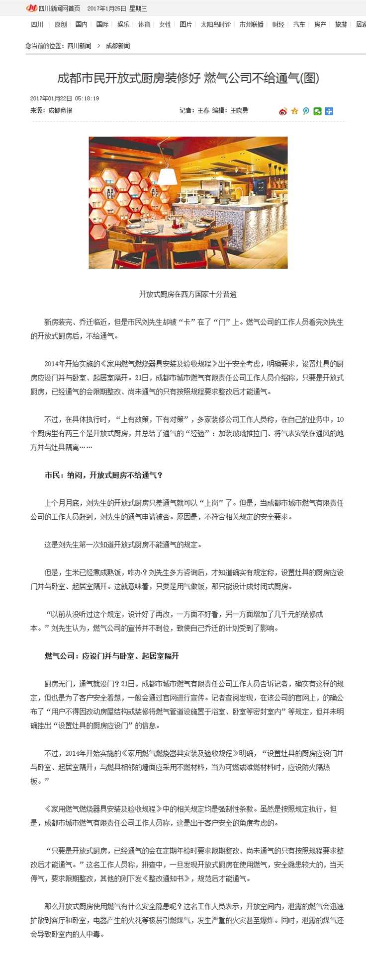 5.問(wèn):之前并不知曉開(kāi)放式廚房不能通氣,現(xiàn)在裝修好了才說(shuō)不能通氣,燃?xì)夤疽膊唤o客戶一個(gè)緩沖期,說(shuō)不通就不通,非常不人性化。